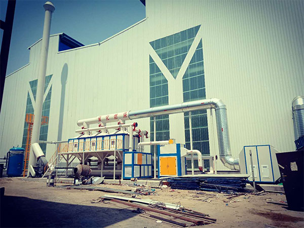 河北京东管业有限公司VOCs治理,采用彩钢瓦半封闭换气通风与集中漆雾废气收集、活性炭吸附加催化燃烧相结合,活性炭吸附饱和后进行脱附并催化燃烧使污染物完全矿化达标排放。