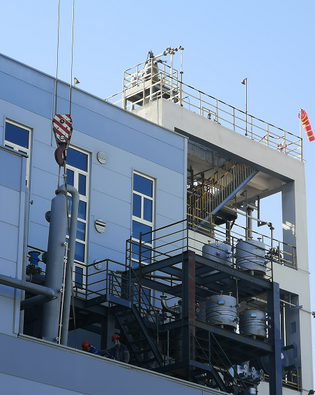 吸附-解吸附装置由3组卧式316L材质吸附器组成,该吸附器均装载高性能吸附材料,废气从底部进入,顶部流出。容器内部装有筛网支撑高性能颗粒活性碳。容器隔热处理,组装后预留检修通道。