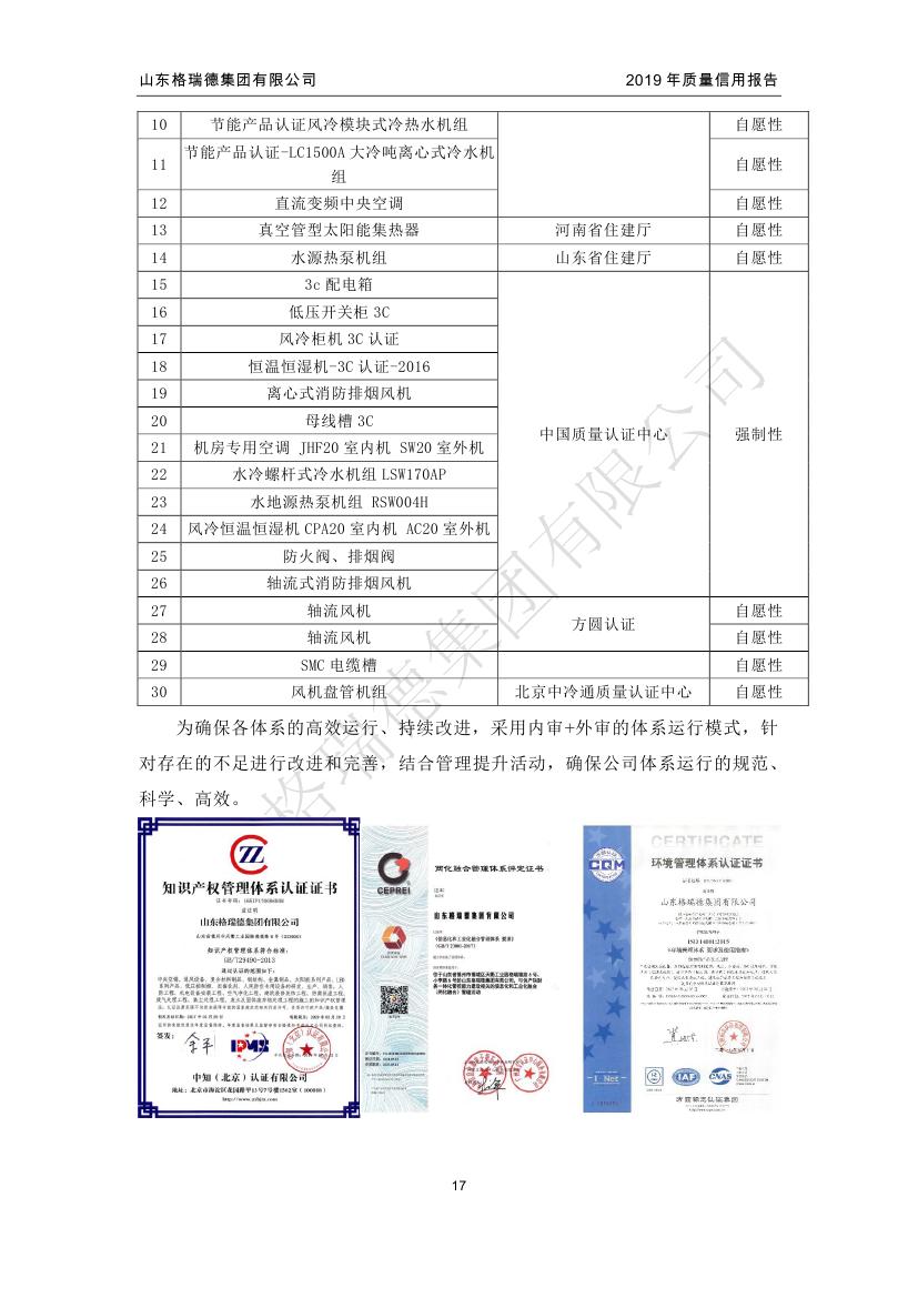 拥有国家机电设备安装壹级资质,环境保护工程二级资质,建筑装修装饰工程专业承包二级资质,钢结构工程三级资质,并获得了中国制冷空调设备维修安装资质,集团生产的空调产品获得国家制冷设备生产许可证,3C中国国家强制性产品认证、CRAA中国制冷空调行业权威性产品性能认证,压力容器国家特种设备设计、制造许可证,制冷主机、风机产品荣获中国节能产品认证。