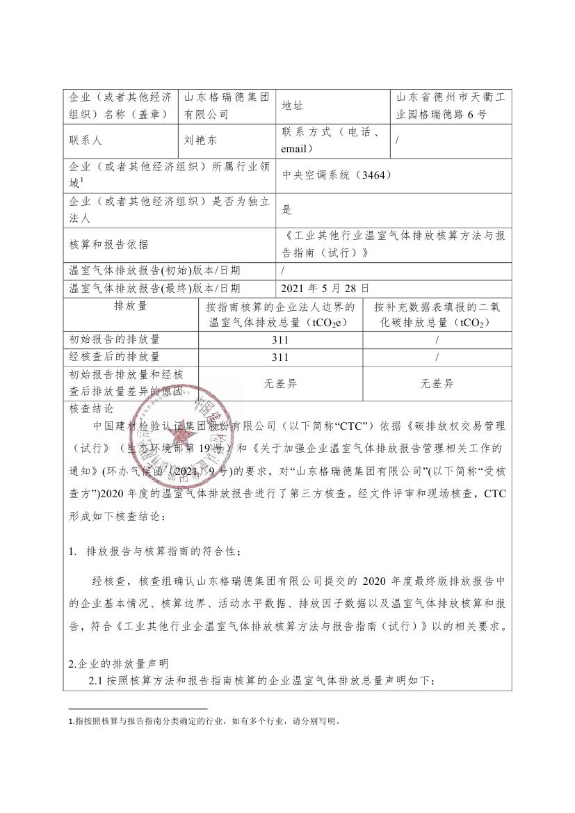 山东格瑞德集团有限公司-核查报告-2020年度