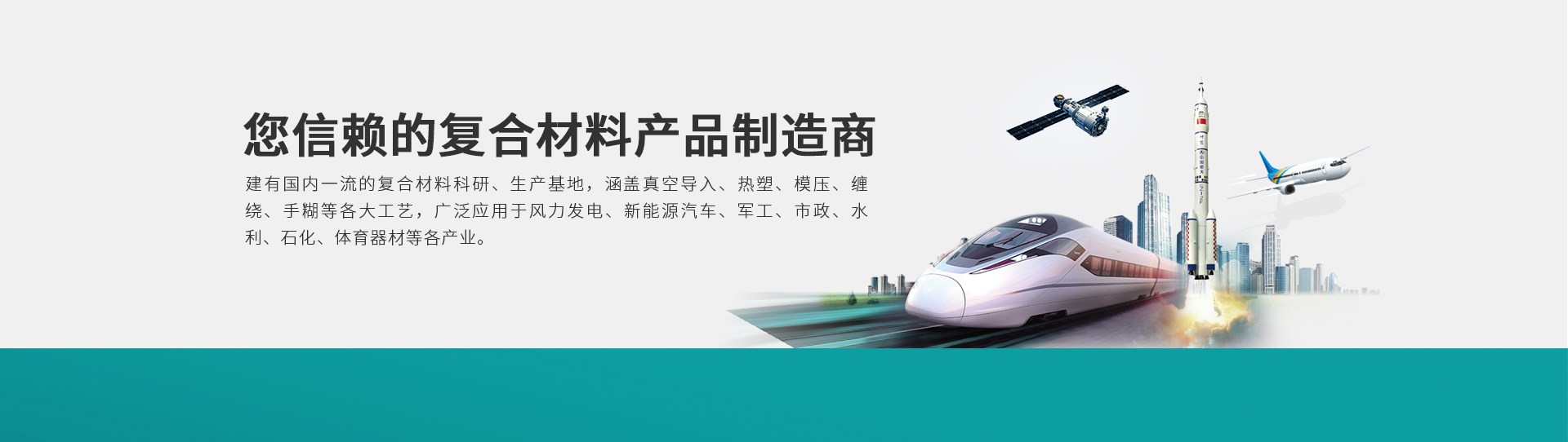 涵盖真空导入、热塑、模压、缠绕、手糊等各大工艺,广泛应用于航空航天、风力发电、新能源汽车、市政、水利、石化、体育器材等各产业。